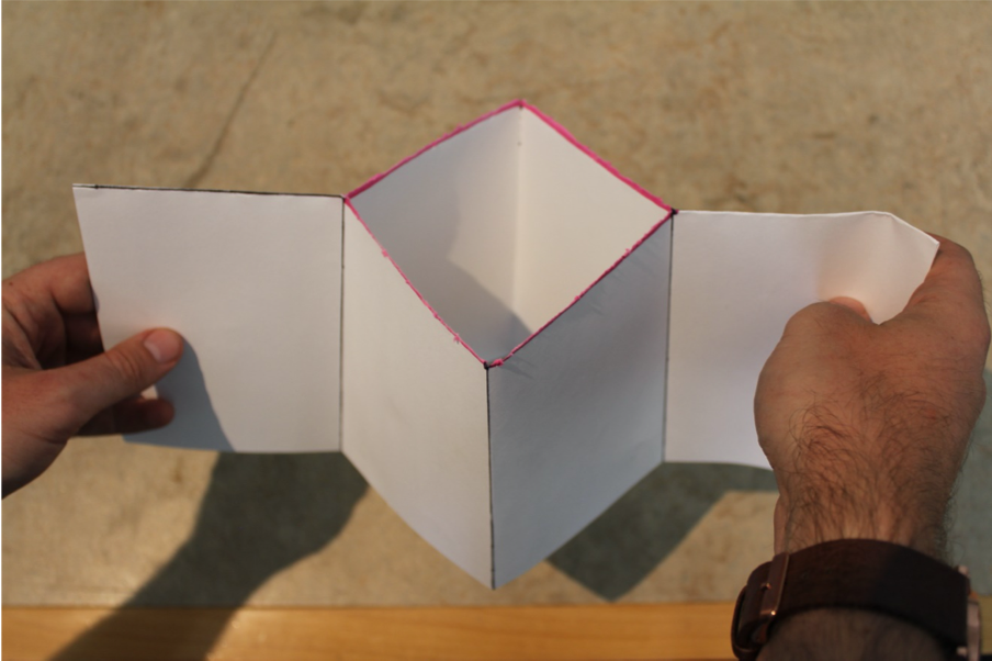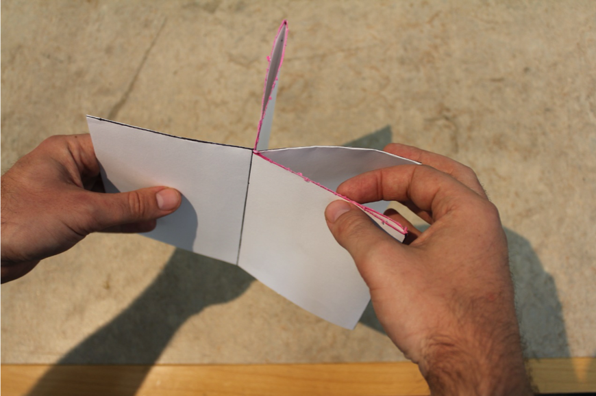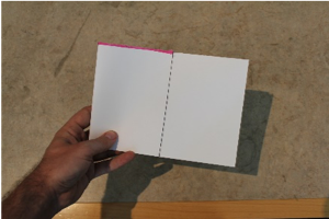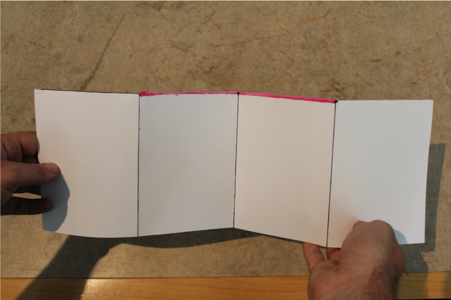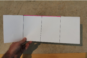 After all the folding, open it back to an A3 page. You’ll want to cut a line down the middle to make the best fold, so it’ll look something like this: